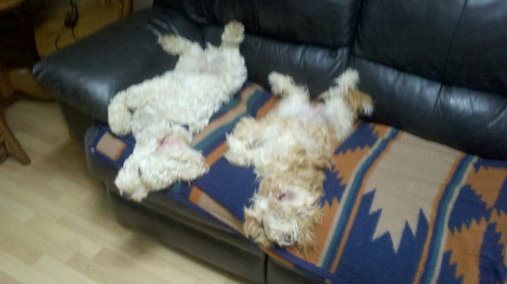 I began the search….I spent hours doing research and found a beautiful Bichonpoo. We went to look at him and he was standoffish and very timid. Not good with two small God daughters. His breeder had also a Cavachon there and brought her out to try to make him more social with us. Well, she came charging across the room, leapt into my lap, licked my face then tried to climb my husbands leg to love on him. SHE chose us!